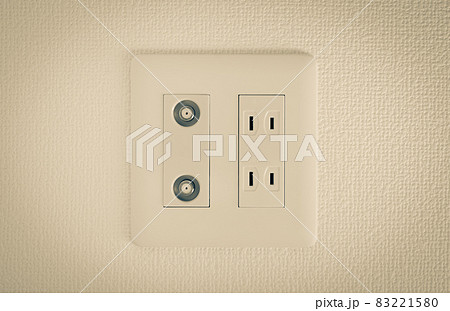 アンテナ端子とコンセント 電源ケーブル 壁面のマルチコンセント テレビのアンテナ端子とコンセントの穴