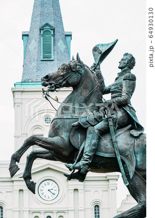 Statue of Andrew Jackson in front of St. Louis Cathedral in New Orleans, USA