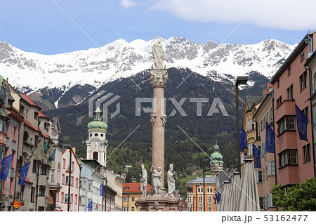 オーストリア、インスブルック、マリア・テレジア通り、アンナ記念柱、ノルトケッテ連峰