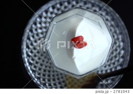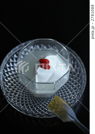 中国発祥のデザート 杏仁豆腐「杏仁羹」クコの実とミントを飾りに(白背景)