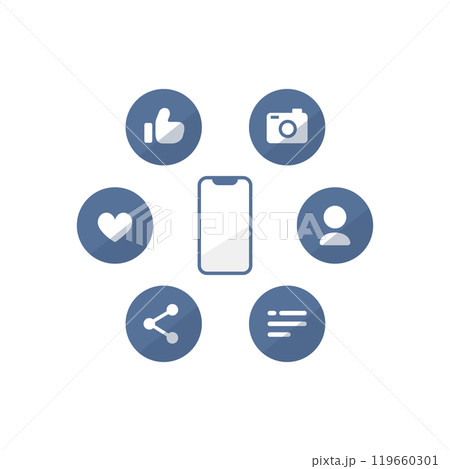 スマホとSNSマーケティングのアイコン(フラットデザイン・ブルー)