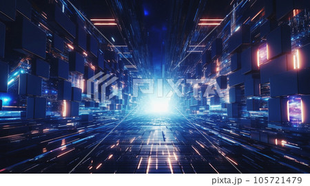 バーチャルな世界に入り込む少年 Boy into virtual world AI生成画像