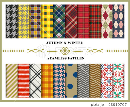 クリスマスカラーギンガムチェック・アーガイルチェック・タータンチェックシームレス背景ベクターイラスト