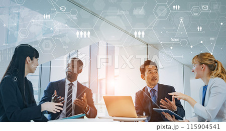 会議する多国籍ビジネスパーソンと経営戦略イメージ