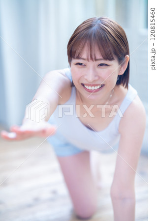 ヨガスタジオでヨガレッスンを受ける若い日本人女性