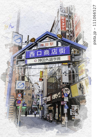 水彩画風 神田 神田駅西口商店街 東京都千代田区
