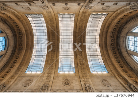Repetitive neoclassical architecture creating symmetrical ceiling domes