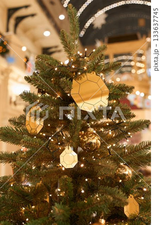 Spectacular holiday centerpiece within spacious atrium illuminated by elegant lighting and glass ceilings