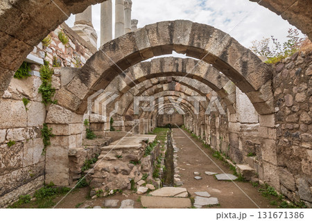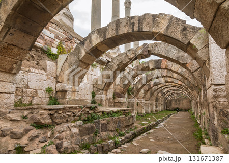 Interior view of ancient stone arcade in historic Agora of Smyrna in Izmir Turkey