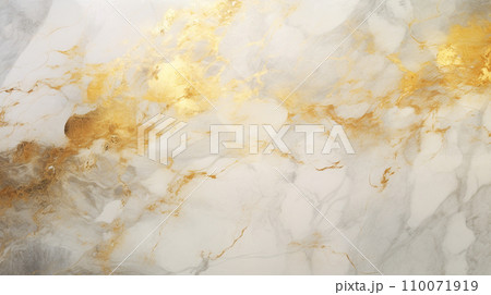 A close-up of a marble surface featuring an elegant blend of blue and gold paint, showcasing intricate patterns and textures