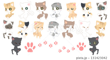 ピクセル風サバトラ猫の横長ネームシールセット(6色)|学習・ごほうび用素材