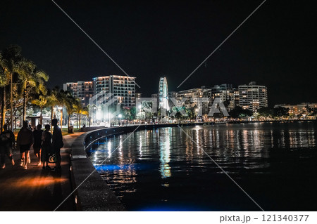 ケアンズ市内の夜景 - 水辺に映るライトと観覧車
