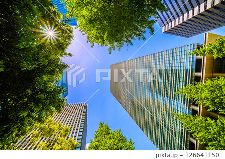 日本の東京都市景観 新時代へ…緑溢れる大手町。大手町プレイスなどを望む。希望の光