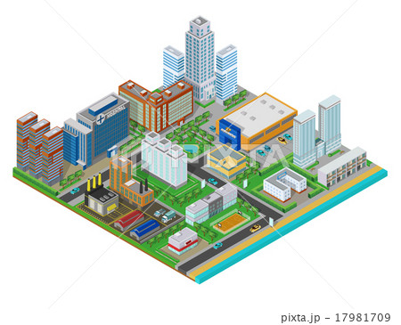 Isometric urban city, real estate background with