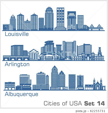 Cities of USA - Louisville, Arlington, Albuquerque. Detailed architecture. Trendy vector illustration.