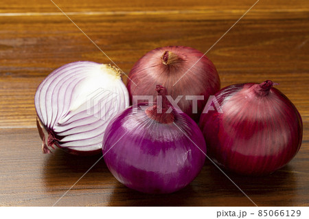 ラスティックな台に乗った紫たまねぎ