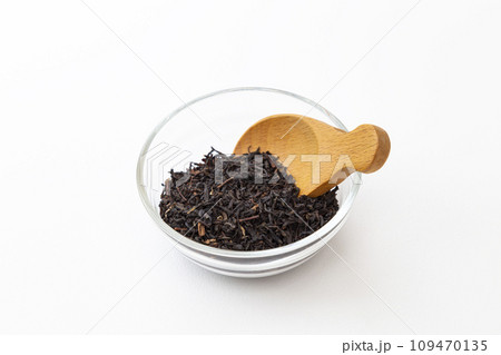 ガラスの器に入った紅茶葉 白バック