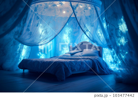 豪華な寝室 天蓋付きのベッド 青色のインテリア
