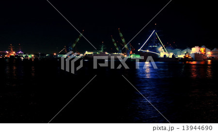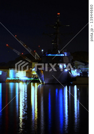 横須賀港 アメリカ海軍 イージス艦 マスティン 駆逐艦 夜景