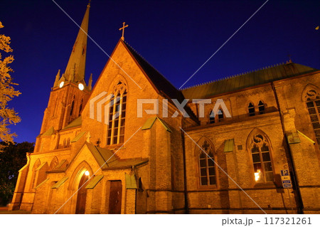 北欧スウェーデンの第2の都市ヨーテボリ(イェーテボリ) ハーガ地区の公園に建つハーガ教会の夜景