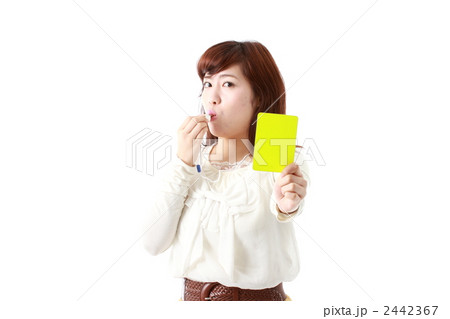 イエローカードを出す若いビジネスウーマン