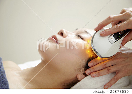 エステ機材、エステサロンのイメージ。プロのエステ、施術と20代女性モデル。