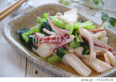 イカと小松菜のバター醤油炒め イカ 小松菜 家庭料理