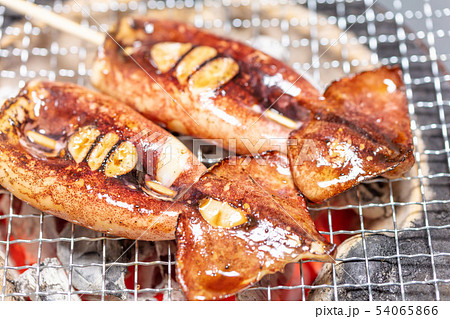 イカ_炭火焼き(炭焼き・網焼き・七輪・一人・宅飲み・バーベキュー・BBQ・焼肉・牛肉