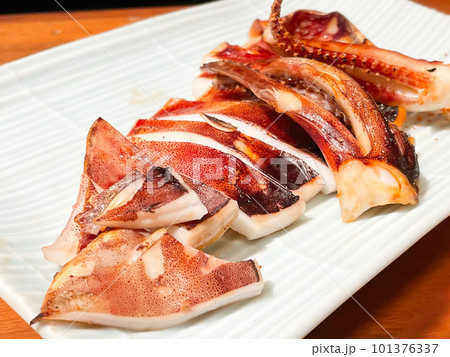 焼きイカ_炭火焼き(炭焼き・網焼き・七輪・一人・宅飲み・バーベキュー・BBQ・焼肉・牛肉
