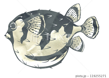 可愛いイシガキフグのウッドペインティング切り絵イラスト