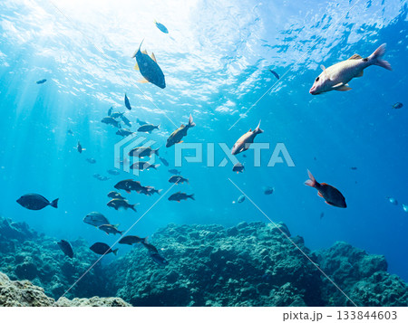 ホウライヒメジ、メジナ、ニザダイ他群れ。ヒリゾ浜南伊豆町中木 静岡県伊豆半島-2025 日本有数