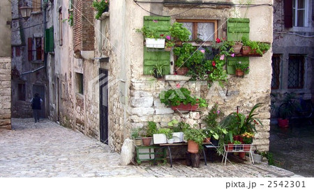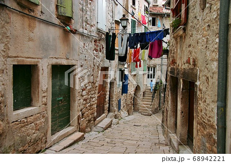生活感溢れるヨーロッパ旧市街の路地裏(クロアチア・ポレチ)