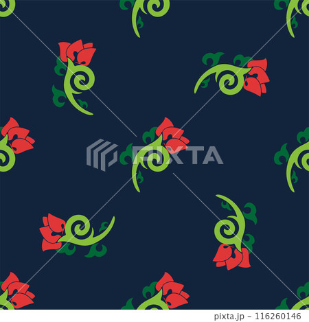 Islamic tulip, floral geometry. Tatar seamless pattern. Culture of the Tatar people, symbols of green and red.