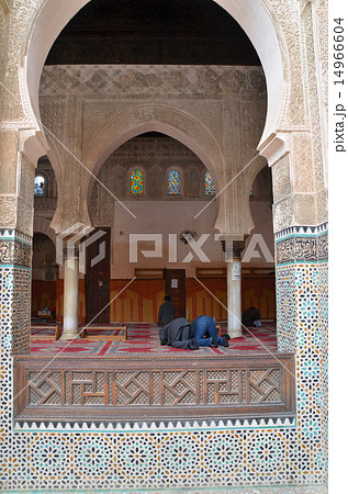フェズの神学校ブ・イナニア・マドラサノミフラーブに向かい祈るイスラム教徒