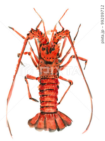 伊勢海老 イセエビ のイラスト【手描き水彩画】白バック 透過背景
