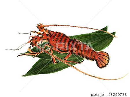伊勢海老 イセエビ のイラスト【手描き水彩画】白バック 透過背景