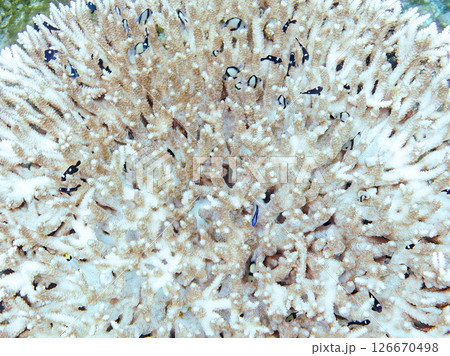 白化したサンゴに住むセダカギンポの幼魚。ヒリゾ浜中木南伊豆町伊豆半島静岡県2024