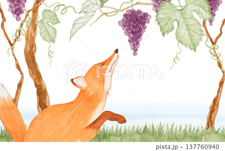 イソップ寓話 キツネとぶどう 水彩 イラスト