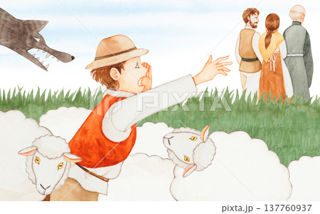 イソップ寓話 オオカミ少年 水彩 イラスト