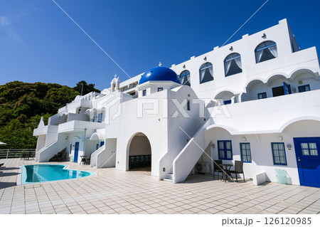 ヴィラ・サントリーニ(高知県土佐市)とそこからの眺め*エーゲ海をイメージしたリゾートホテル
