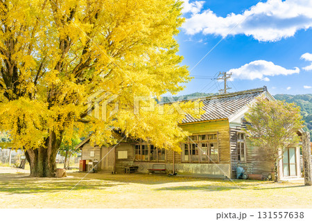 三重県南伊勢町 黄金色に輝く旧穂原小学校の大銀杏