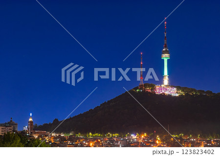 ソウル ライトアップされたNソウルタワーと緑莎坪大路