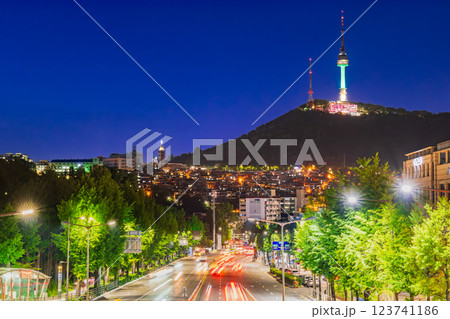 ソウル ライトアップされた南山タワーと緑莎坪大路