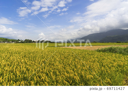 宜蘭、稻田、金色稻穗、台東池上、 伯朗大道、池上米、台灣、秋天、收成
