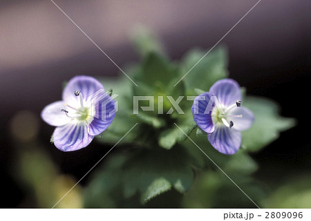 二輪のオオイヌフグリの花のクローズアップ(星の瞳の青い花)