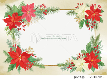 ポインセチアと柊のカラフルなクリスマスフレーム