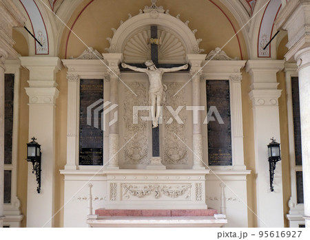 Catholic graves tombstones, Mirogoj cemetery in Zagreb, Croatia