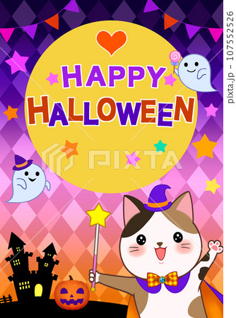 ハロウィンのかわいい背景イラスト 猫とカボチャとお化け