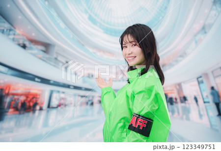 ショッピングモールでお客様の案内をするイベントスタッフ