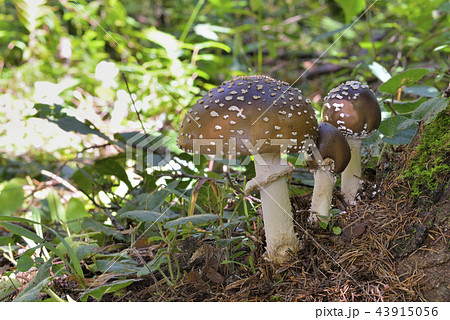 森に自生するイボテングタケ(毒キノコ)